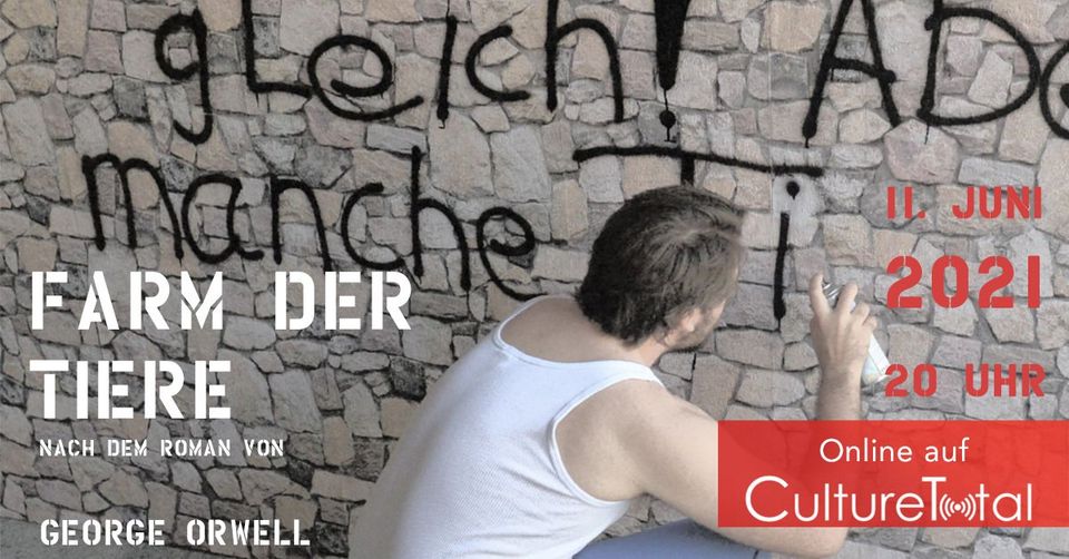 George Orwell's 1945 novel describes the shift of power within an existing group. Orwell's parable thus becomes a timeless warning against the abuse of power and carelessness that can lead to the failure of a revolution. David Schnaegelberger's production of the novel will be performed by the Landestheater Burghofbühne as a premiere on Friday 11 June as a live stream from the Kathrin Türks Hall.